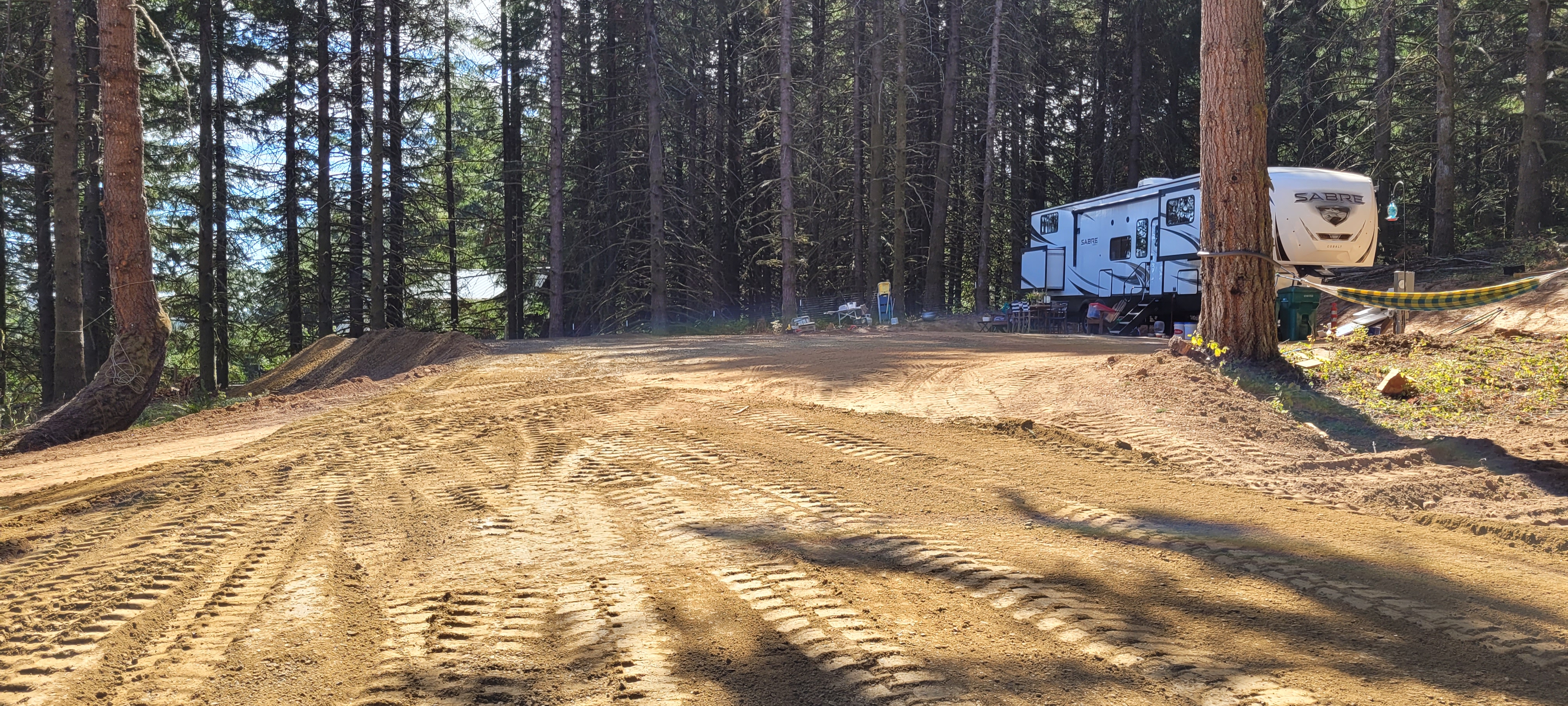 The trailer was moved up to the property in August with very limited resources at hand. A flat-ish dirt parking area and running water were our main assets. Two small generators and multiple trips off the mountain to dump the tanks kept us going until more facilities were installed. Our fantastic excavator went above and beyond to get us set up with septic and a flat gravel pad before the fall rains set in and the electrician put in all the rough electrical to prepare us for a connection to power. Never in my life did I think that gravel would be so important to me but after living with so much dirt it was beautiful. After two months listening to the generators running for several hours a couple times a day the power was connected. I almost hugged one of the linemen who showed up to make our connection and turn on our power.